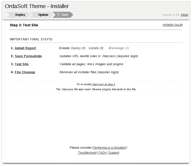 Congratulation, WordPress! is now installed! The last step needed is to remove the installation directory! Go to your web site.
