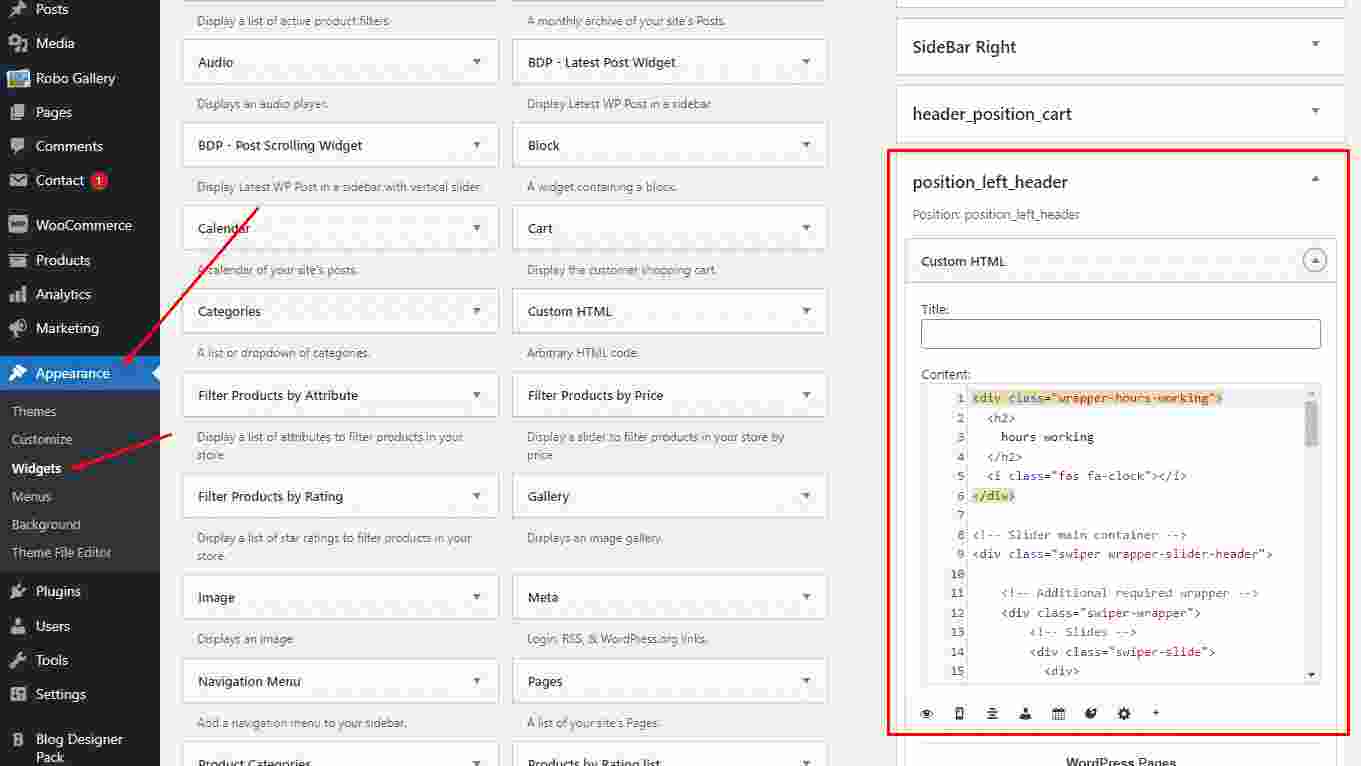 To edit, go to admin panel -> Appearance -> Widgets: position_left_header