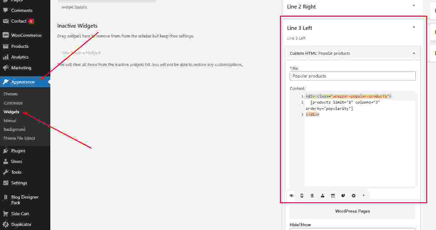 To edit, go to admin panel -> Appearance -> Widgets: Line 3 Left