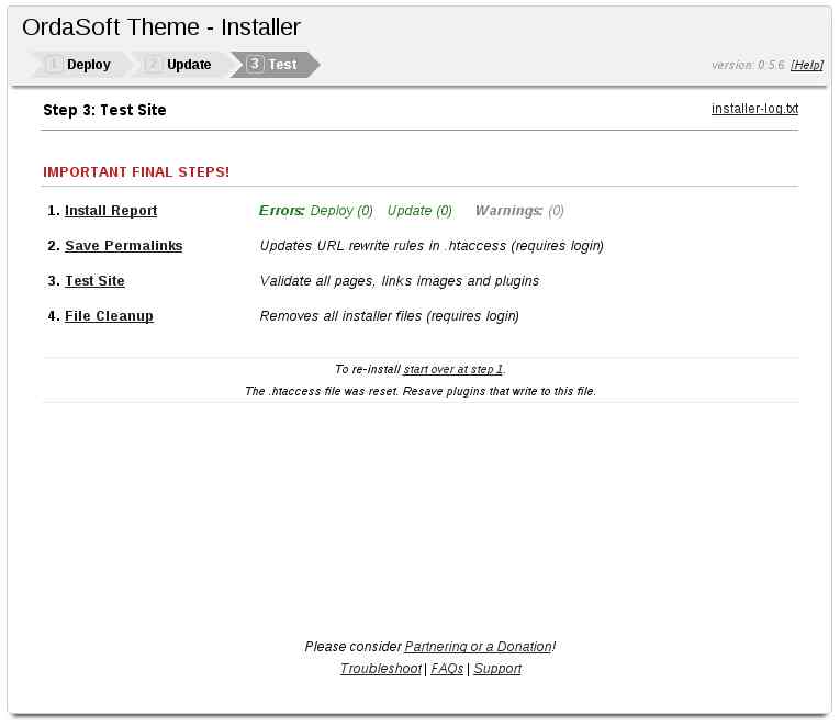Congratulation, World Press! is now installed! The last step needed is to remove the installation directory! Go to your web site.