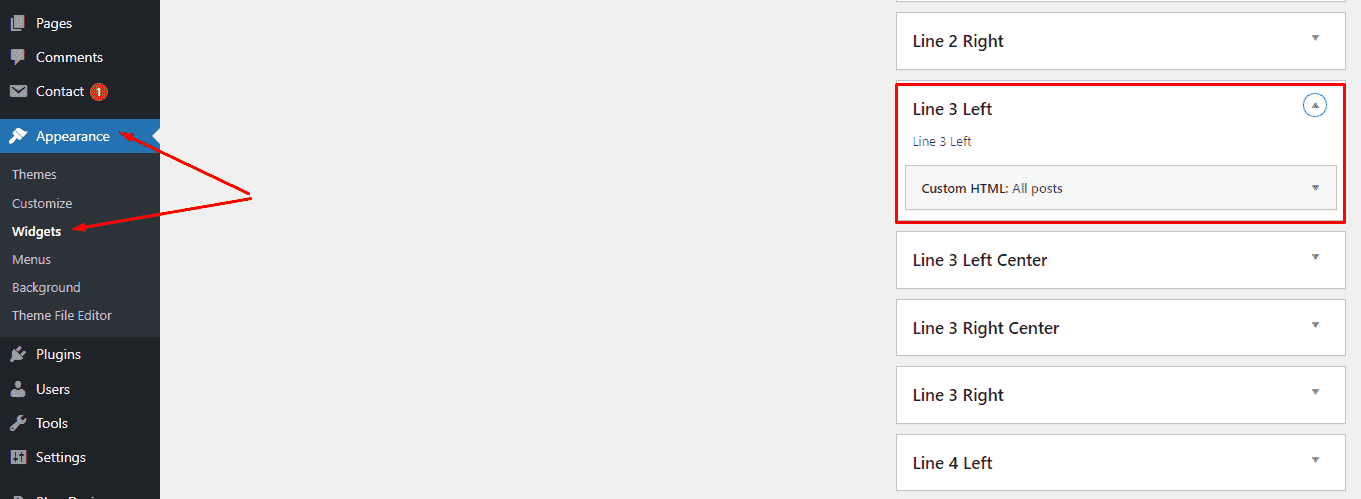 To edit, go to admin panel -> Appearance -> Widgets -> Line 1 Left