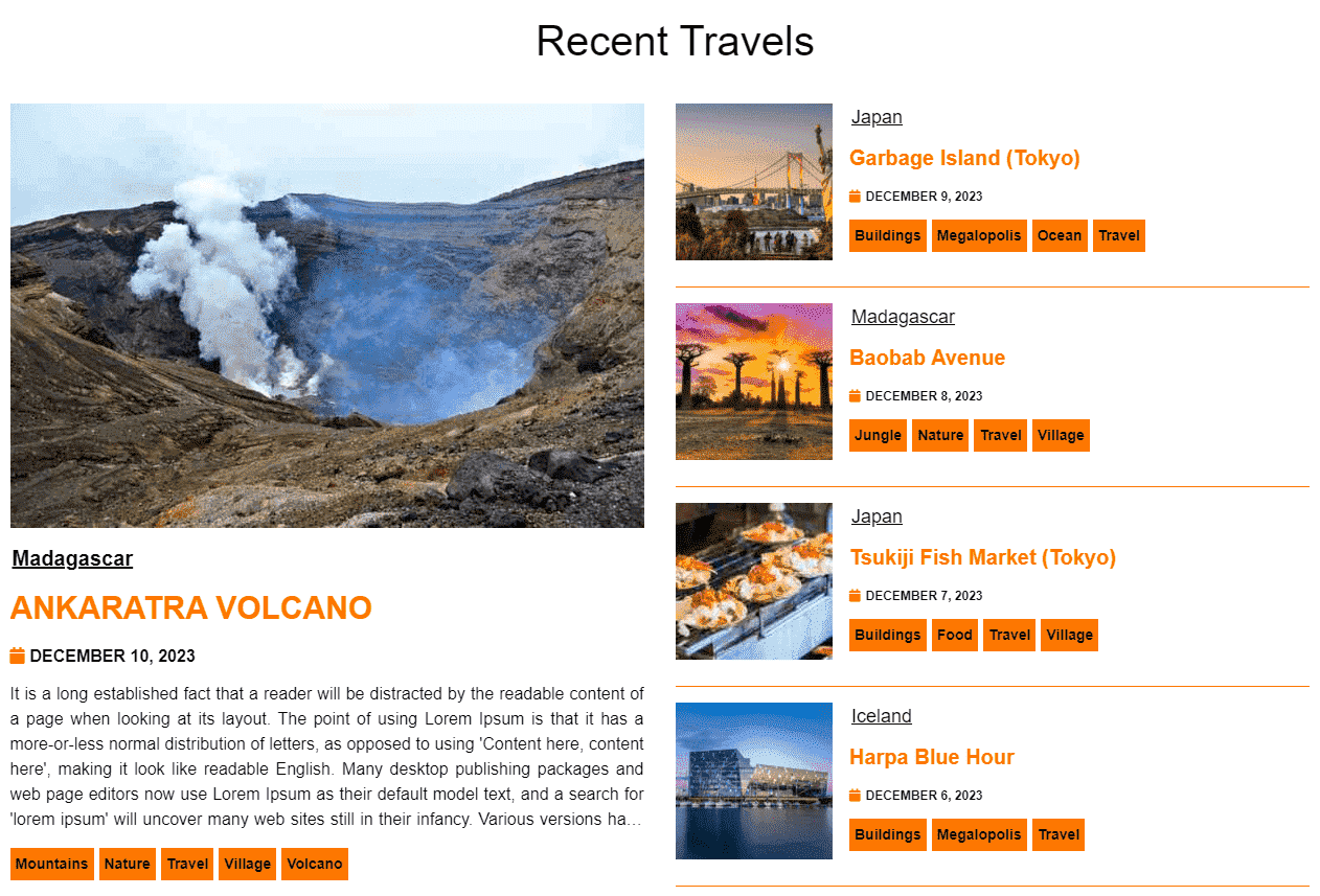 Installing Quick Start package you get the same site as at the demo version. Quick Start package contains an entire World Press installation and already configured World Press Theme and extensions which we used on the demo site. Installing World Press Theme via Extension manager doesn't include sample date. You will need by your self to install and configure all extensions.